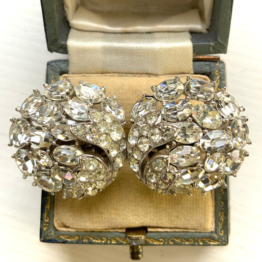 VINTAGE 1950s-60s TRIFARI Rhinestone Cluster Clip-On Earrings