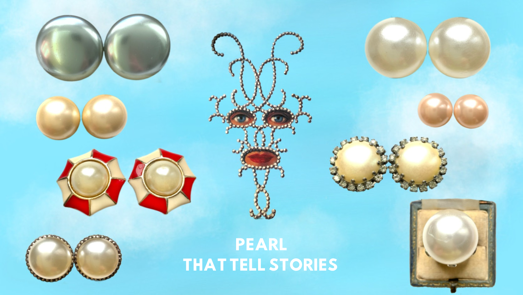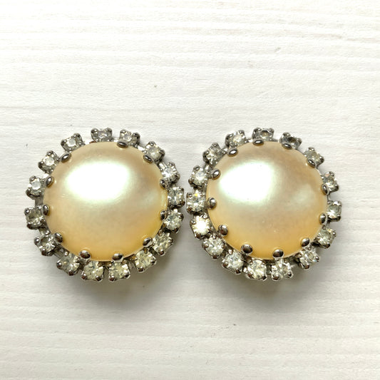 VINTAGE Pearl Button & Rhinestone Clip-On Earrings