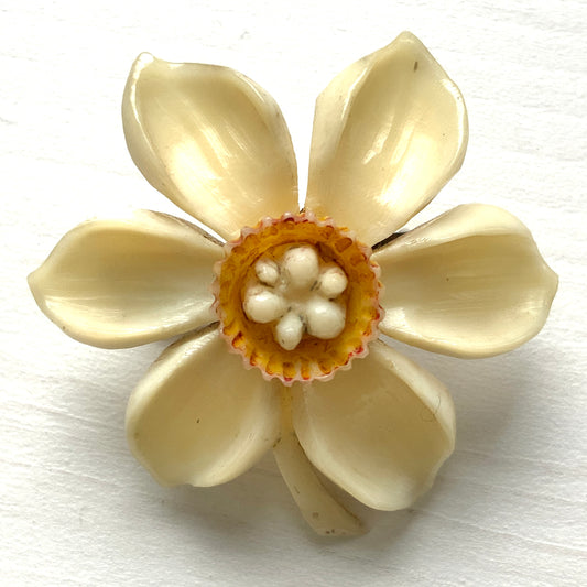 ANTIQUE Celluloid Carved Daffodil Brooch
