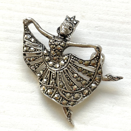 VINTAGE 1970s Marcasite Ballerina Silver Brooch