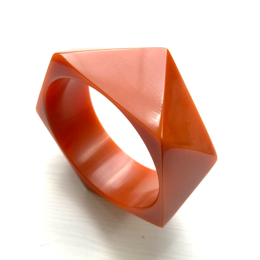 VINTAGE 1930s Chunky Faceted Burnt Orange Early Plastic Bangle