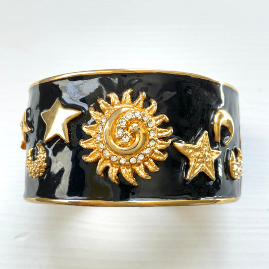 VINTAGE 1980s Black Enamel Celestial Bangle