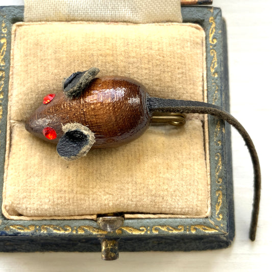 VINTAGE 1960s Wooden Mouse Mini Brooch