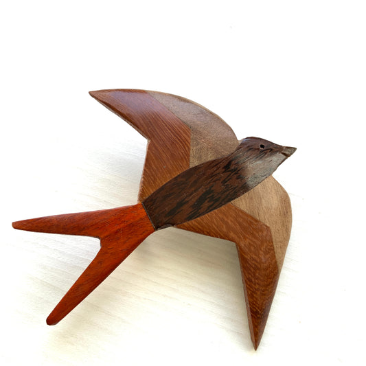 VINTAGE 1970s Inlay Wood Swallow Brooch