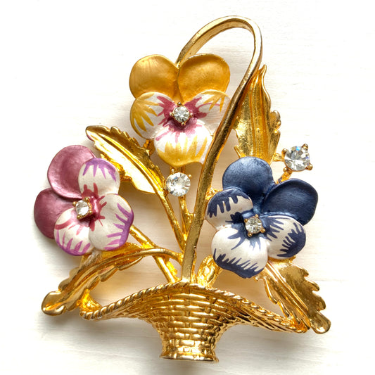 VINTAGE 1980s Enamel Pansy Basket Brooch