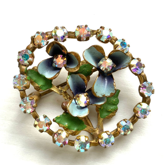 VINTAGE Enamel Violet & Aurora Borealis Brooch