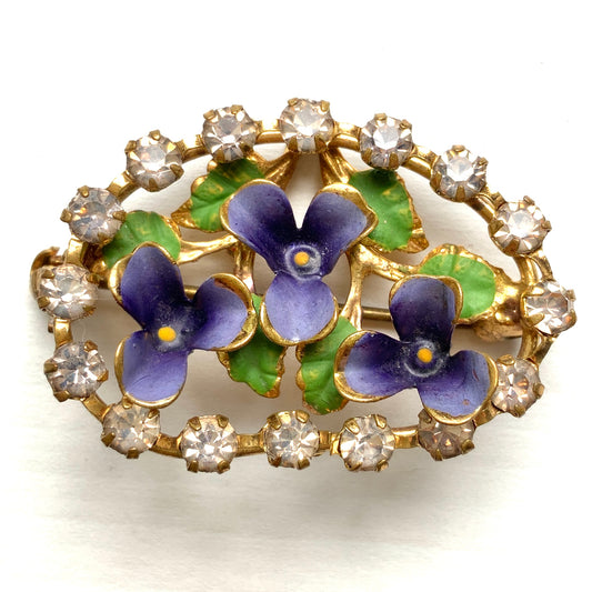 VINTAGE Enamel Violet & Rhinestone Brooch