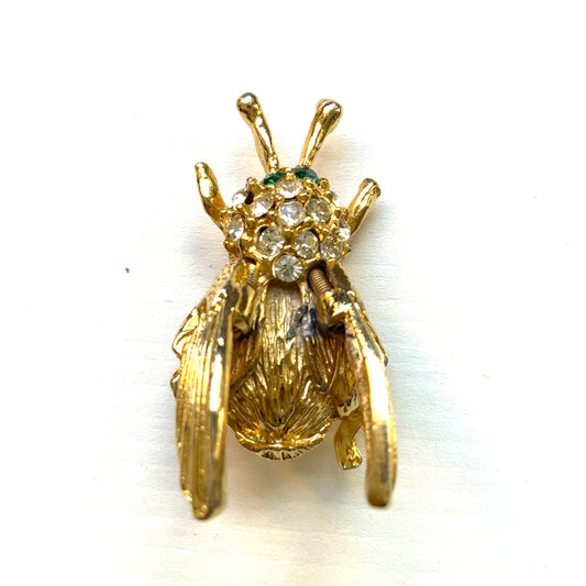 VINTAGE 1970's Gold Tone & Rhinestone Trembler Bug Brooch