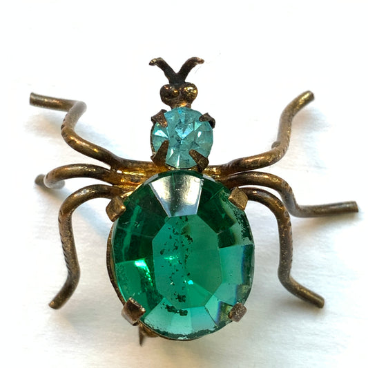 VINTAGE ART DECO Green Glass Spider Mini Brooch