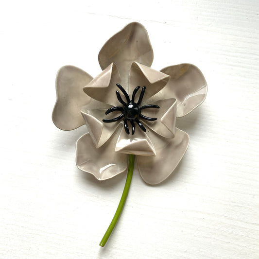 VINTAGE 1960−70's Enamel Grey Flower Brooch