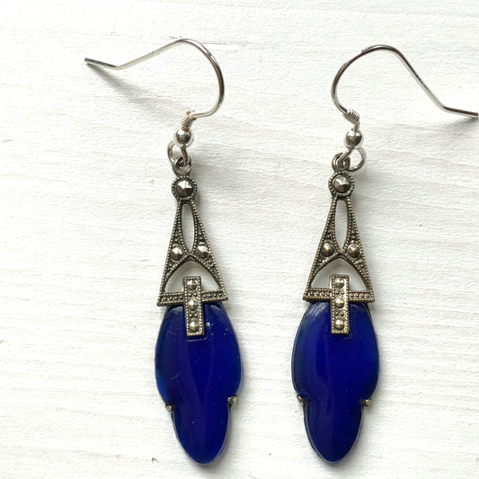 VINTAGE ART DECO Royal Blue Enamel Pierced Earrings