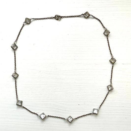 VINATGE ART DECO Clear Square Glass Silver Riviere Necklace