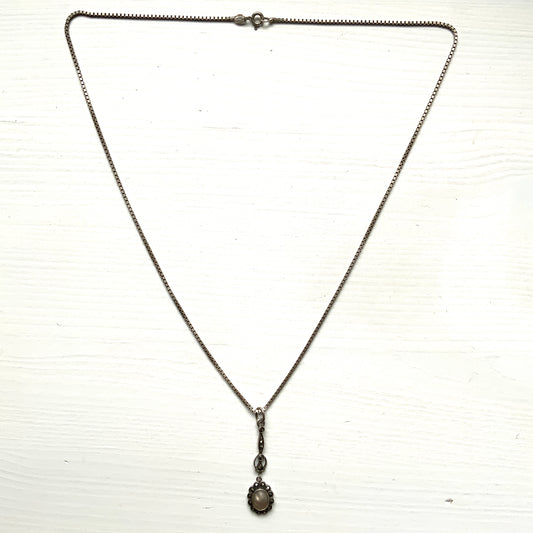 VINTAGE ART DECO Oval Pearl & Marcasite Silver Necklace