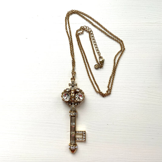 VINTAGE MODERN BUTLER & WILSON Clear Bijoux Crown & Key Necklace