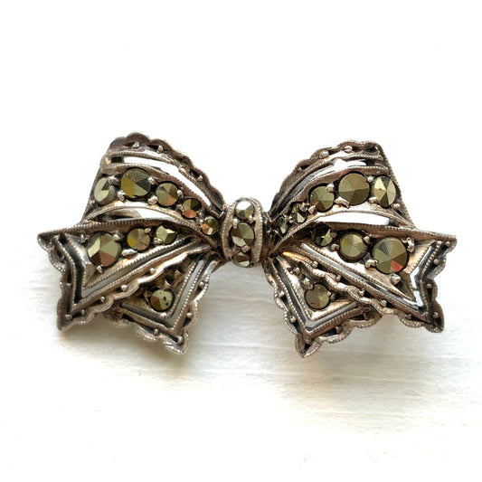 VINTAGE Marcasite Bow Silver Brooch