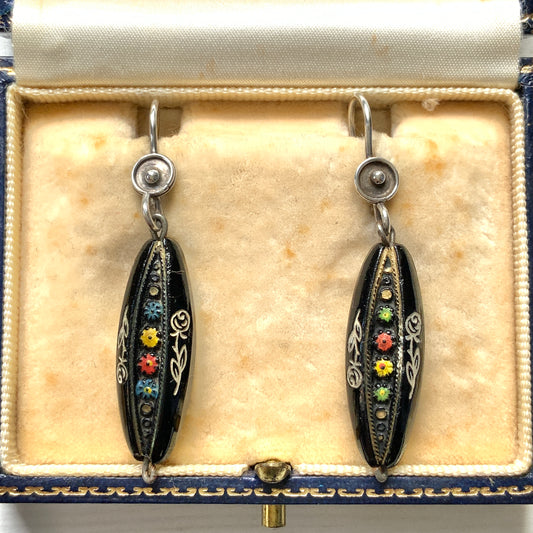 ANTIQUE Micro Mosaic Teardrop Pierced Earrings