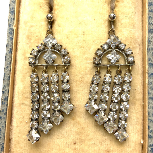 VINTAGE ART DECO Clear Square Glass Drop Earrings