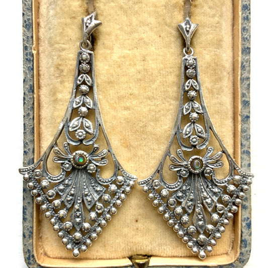 VINTAGE ART DECO Marcasite Openwork Silver Drop Earrings