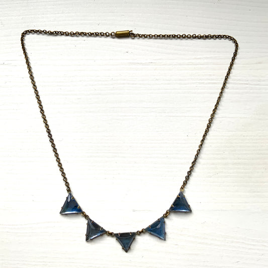 VINTAGE 1930s Czech Blue Triangle Mirror Glass Bunting Necklace
