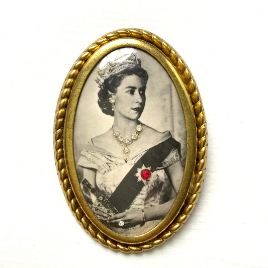 VINTAGE 1953 Queen Elizabeth II Jewelled Coronation Portrait Brooch
