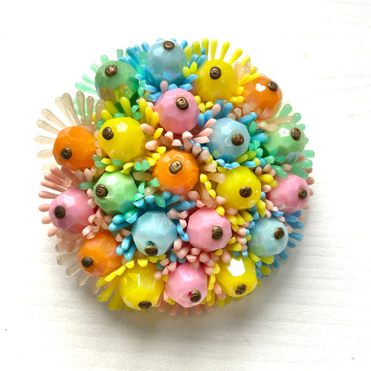 VINTAGE 1960s Soft Plastic Multicoloured Flower Big Round Brooch