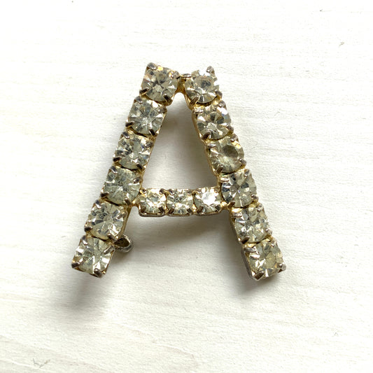 VINTAGE 1960s Rhinestone Initial "A" Brooch