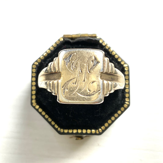 VINTAGE Gold on Silver Engraved Initial “J L” / Monogram Signet Ring