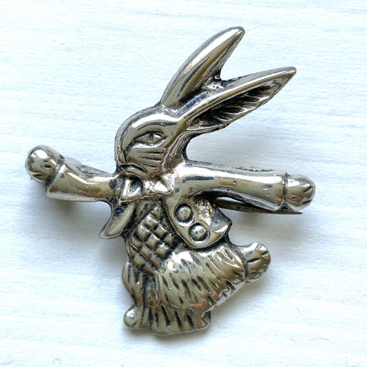VINTAGE 1960s Alice In Wonderland White Rabbit Silver Brooch