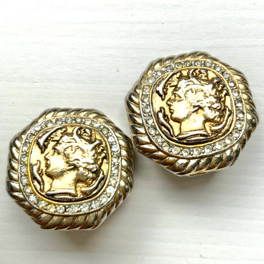VINTAGE 1980s GEM CRAFT Coin Style Clip-On Earrings