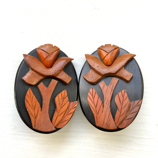 VINTAGE 1980s Wooden Rose Clip-on Earrings