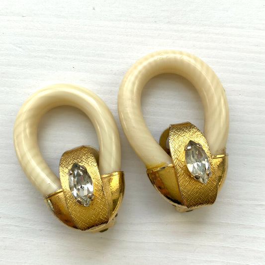 VINTAGE Faux Ivory Hoop & Gold Tone Clip-on Earrings