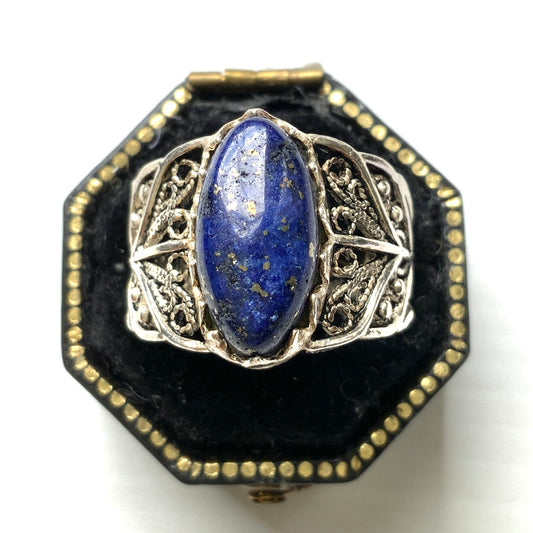 VINTAGE Oval Lapis Lazuli Filigree Silver Ring