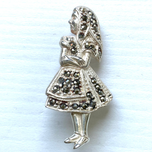 VINTAGE Marcasite Alice in Wonderland Silver Brooch