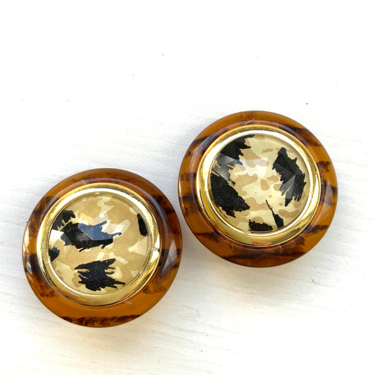 VINTAGE Faux Tortoiseshell Dome Clip-on Earrings
