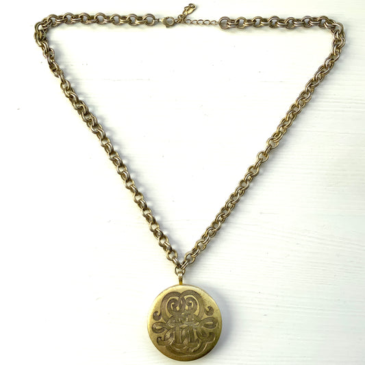 VINTAGE 1980s MONET Gold Tone Round Locket Necklace