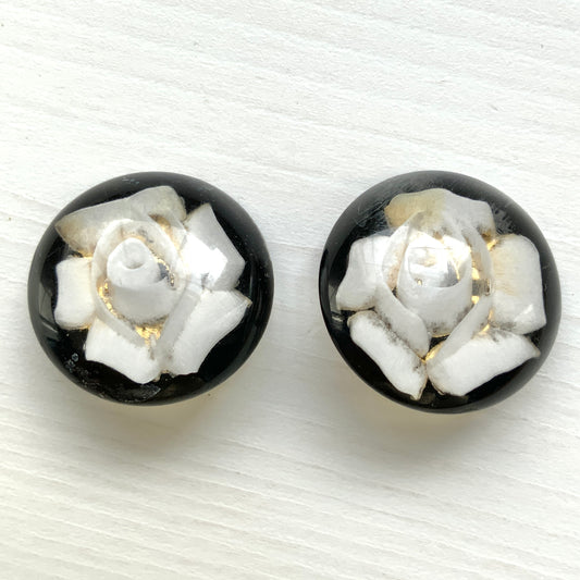 ヴィンテージ 1950年代 ホワイトローズ インタリオ クリップイヤリング