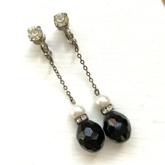 ヴィンテージ 1950−60年代 パール&ブラックオーバルグラス ダングルクリップイヤリング