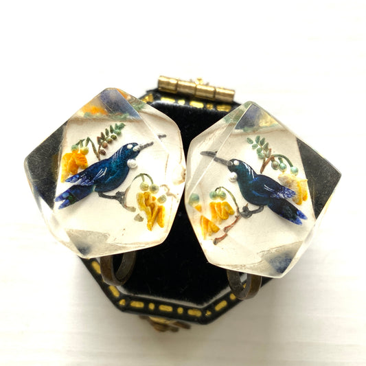 ヴィンテージ 1950年代 青い鳥 インタリオ ルーサイト スクリューイヤリング