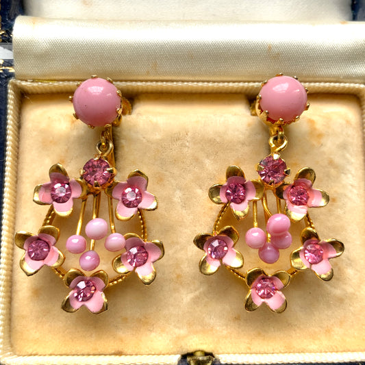 ヴィンテージ 1950−60年代 ピンクエナメル フラワー クリップイヤリング