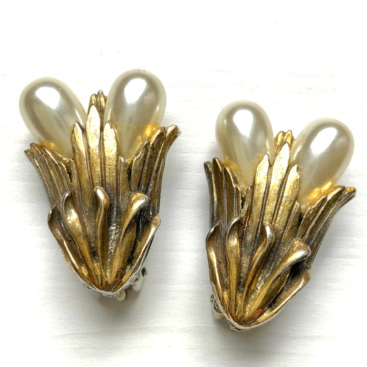 ヴィンテージ 1960年代 ボッティチェリ ゴールドトーン x フォーパール クリップイヤリング