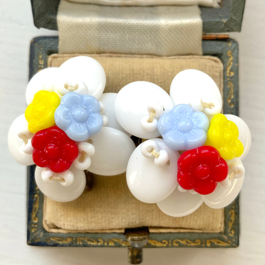 ヴィンテージ 1930年代 ミルクグラス&マルチカラーフラワーグラス スクリューイヤリング
