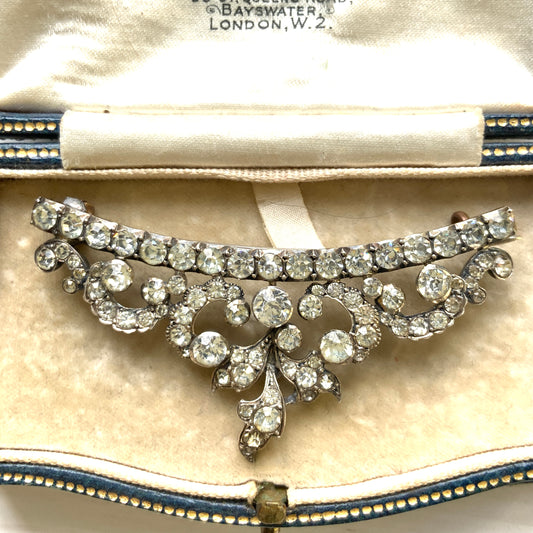 アンティーク エドワーディアン ラインストーン ガーランド & リーフ シルバーブローチ