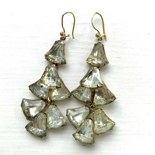 ヴィンテージ シャンパンラインストーン ドロップピアス