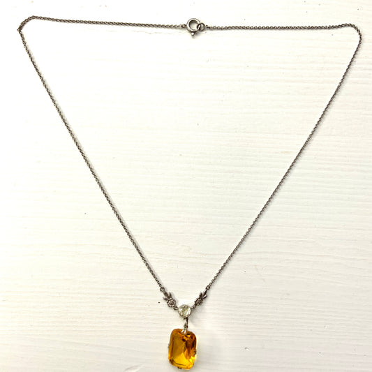 ヴィンテージ アールデコ イエロー 長方形 ガラス ペンダント ネックレス