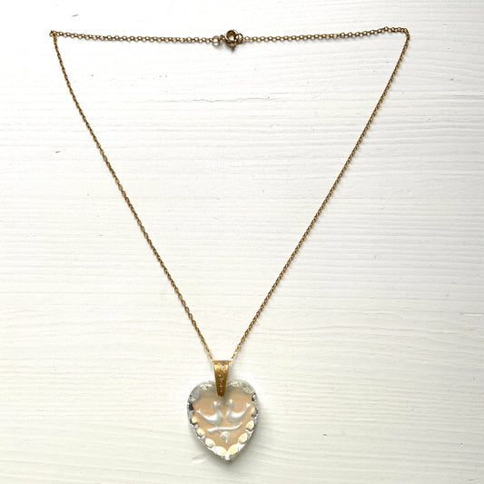 ヴィンテージ クリアハートガラス インタリオ 2匹の鳥 ペンダントネックレス