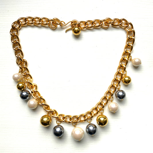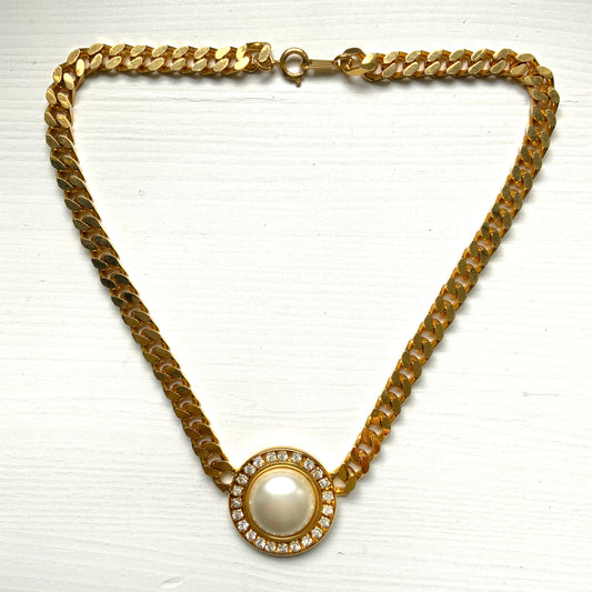 ヴィンテージ 1980年代 ビッグパール カボション&ゴールドトーン チャンキー チェーン ネックレス