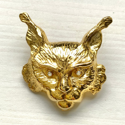 ヴィンテージ ゴールドトーン リンクスフェイス ブローチ