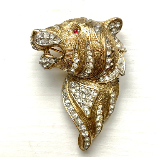 ヴィンテージ 1980 年代 ATTWOOD & SAWYER ゴールドトーン & ラインストーン タイガー ブローチ