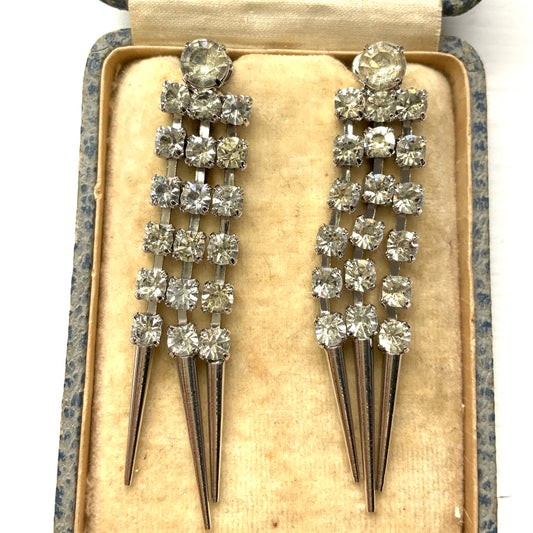 ヴィンテージ 1970 年代 サラ コベントリー ラインストーン & シルバー トーン スパイク クリップ イヤリング