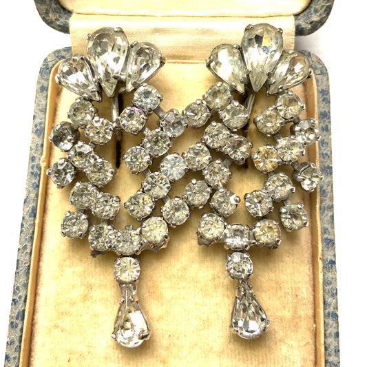 ヴィンテージ ジュエルクラフト ラインストーン ダングル クリップ イヤリング